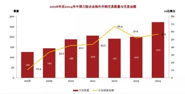 根据CCG的数据,2014年民企对外投资案例达256起,占全年总投资案例数的69%。CCG从投资案例数量上作出判断,民企已逐渐成为对外投资主力。CCG主任人王辉耀对《第一财经日报》表示,反腐、海外资产审查等因素导致国有企业的对外拓展步伐放缓,而2012年6月国资委开始鼓励和引导民企开展境外投资以来,民企作用日益扩大。CCG认为,“蛇吞象”式的并购案例为民企进军海外的主要方式,如联想并购IBM、长电科技并购半导体封装测试行业领军企业新加坡星科金朋公司、吉利汽车并购沃尔沃等。