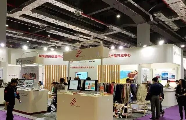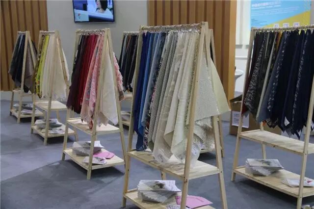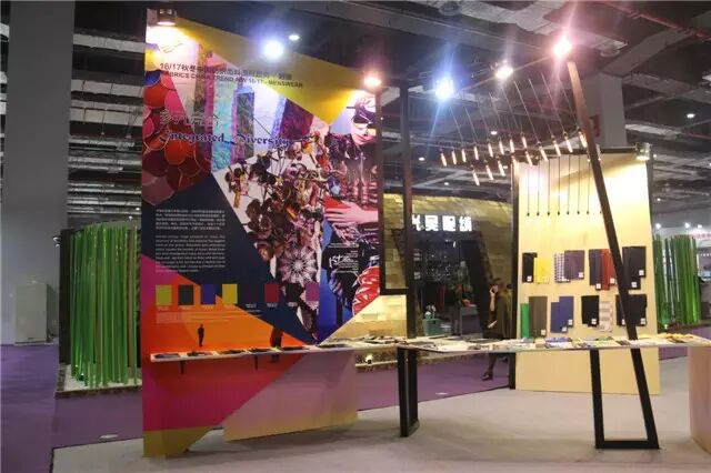 在中国纺织信息中心的精装展位中,专门开辟了“中国流行面料”展示区,展出了2015年度设计大赛获奖产品700余块。