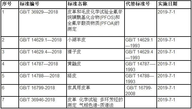其中,原料标准1项、纺织机械标准1项于2019年4月1日开始实施,纺织品检测标准9项、原料标准10项、纺织机械4项、皮革标准7项、鞋类标准3项、服装标准4项于2019年7月1日开始实施,染料检测标准6项于2019年11月1日开始实施。