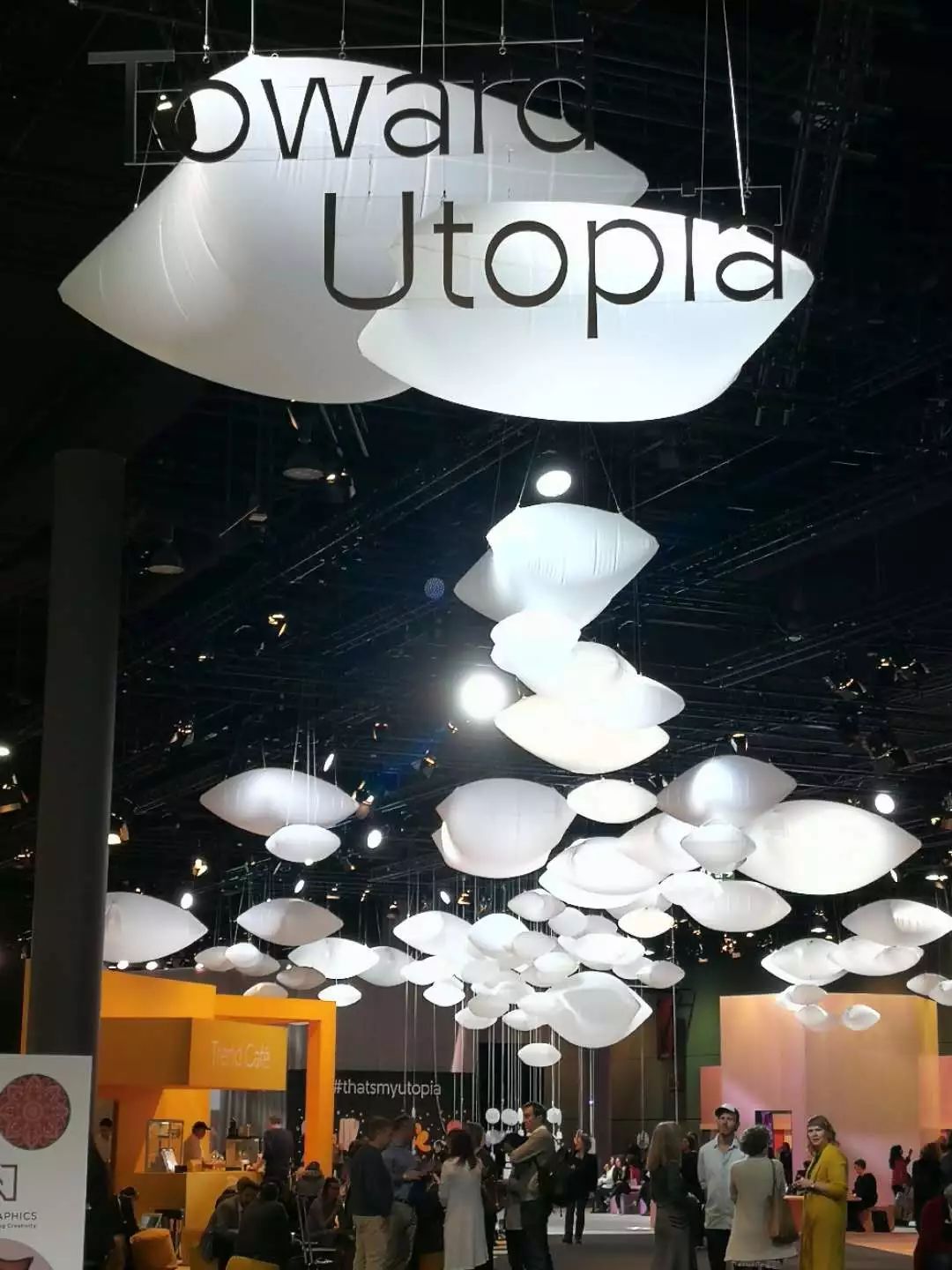 流行趋势的主题发布展区一直是Heimtextil展的重头戏。今年展会最新发布的2019/2020流行趋势主题为“Toward Utopia (直抵乌托邦)”,体现出人们对美好生活方式的向往,或者说是“寻梦桃花源”。发布的整体理念源于当今社会正面临着各种各样的挑战,人们在寻求一种可持续的发展方式——尊重自然与环境,建立在个人责任、积极行动与乐观主义基础上的一个通往新的乌托邦的道路。